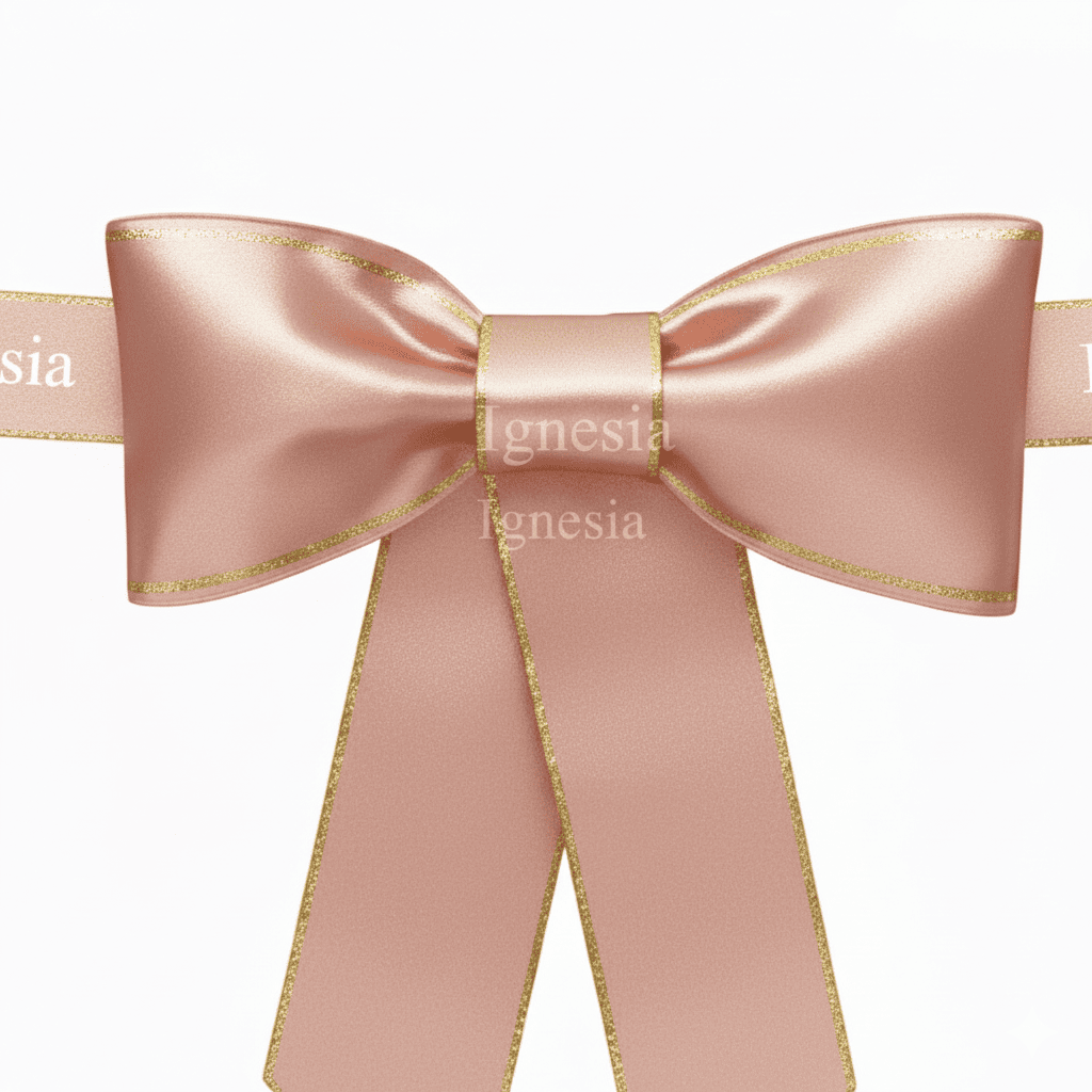 Custom Pita Grand Opening Gedung Pink Muda 70cm Polos Satin Premium Tebal Lis Gold