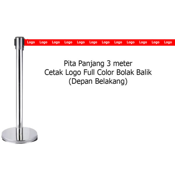 Tiang Antrian Hitam Tali Pita Salem 3 Meter – Custom Cetak Logo