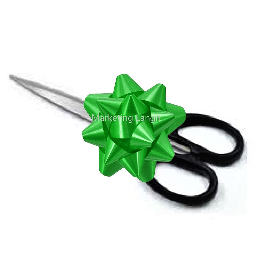 Gunting Set Hiasan Pita Bintang Hijau Tua Untuk Potong Pita Peresmian Kantor, Acara Seremonial Gunting Pita.