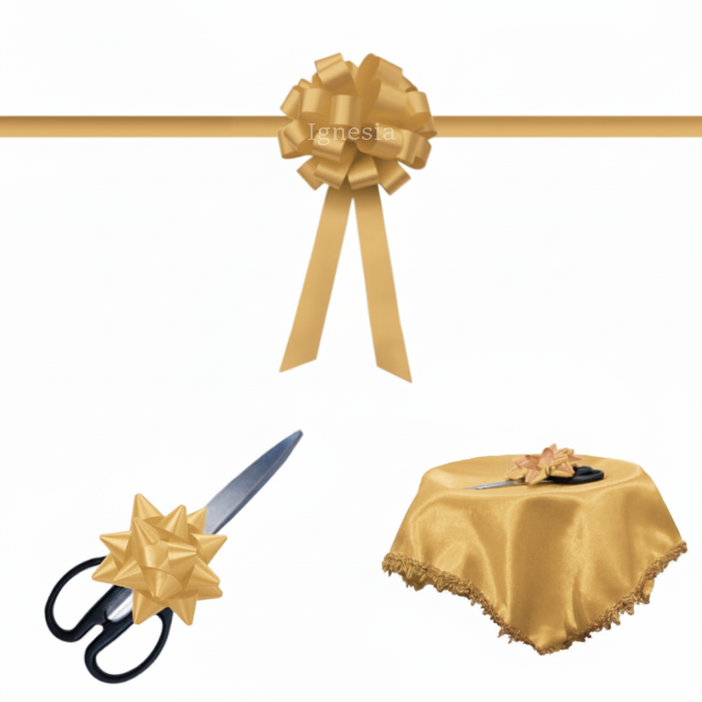 Pita Dekorasi Peresmian Gold Krem 15cm Set Gunting & Nampan Hias PP Real Ribbon By IgnesiaBisa Custom