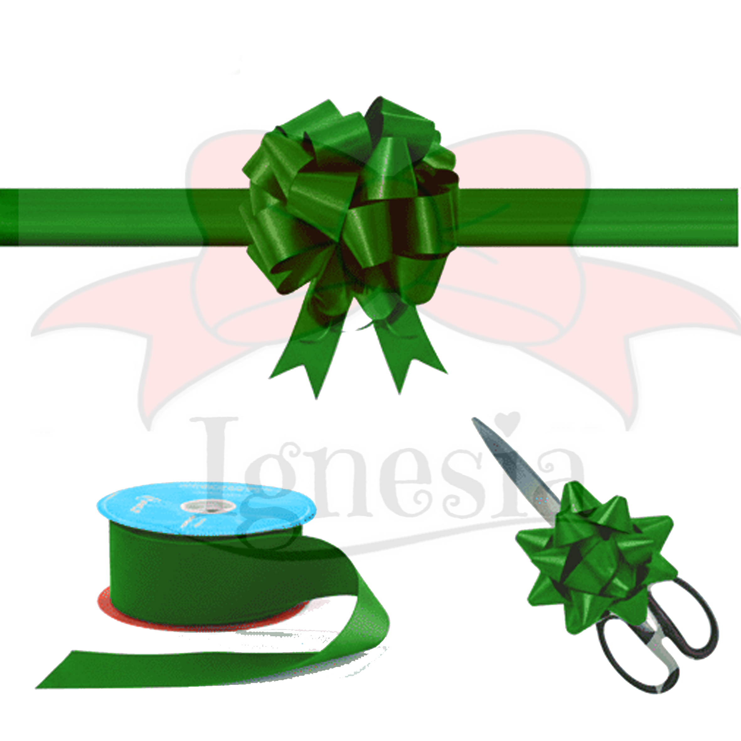 Pita Grand Opening Toko Hijau Metalik 15cm Set Gunting Hias Satin Real Ribbon By IgnesiaBisa Custom