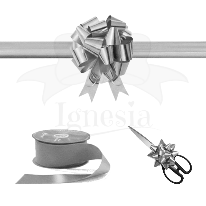 Pita Peresmian Kantor Silver Metalik 15cm Set Gunting Hias Satin Real Ribbon By IgnesiaBisa Custom